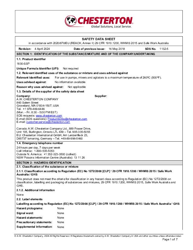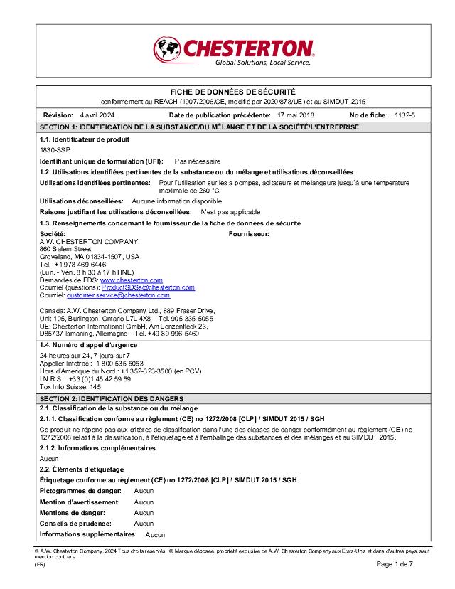 SDS: 1830SSP (Francais)
