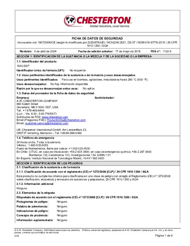 SDS: 1830SSP (Espanol)