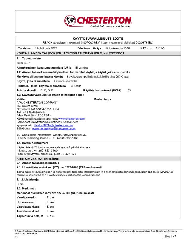 SDS: 1830SSP (Finnish)