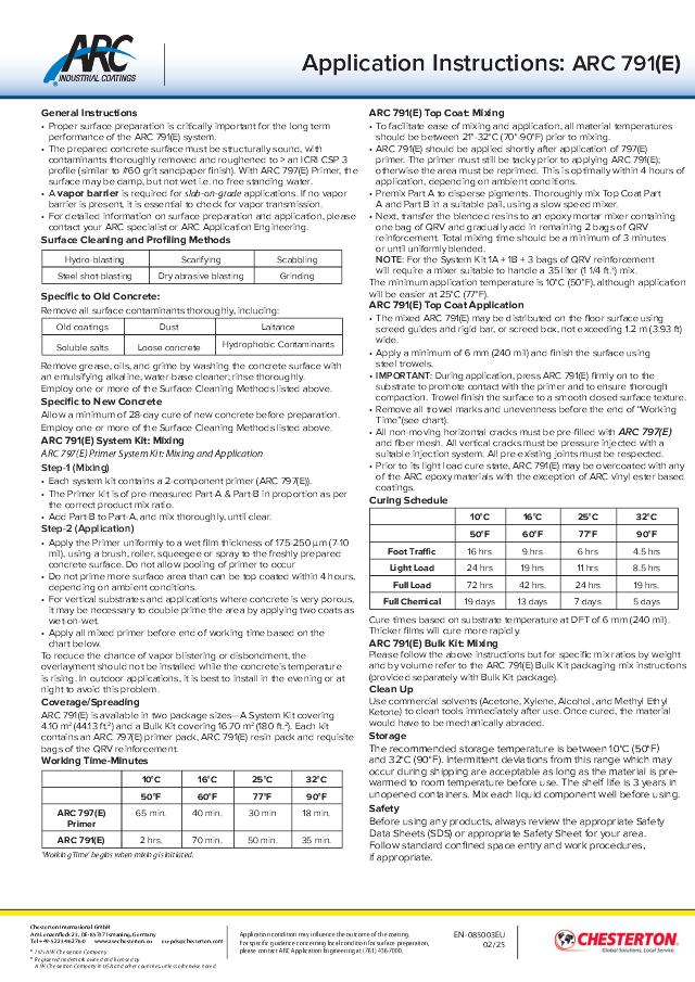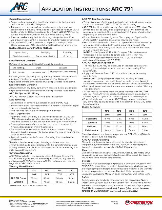 Application Instructions: ARC 791(E) (English) Available in EMEA Only