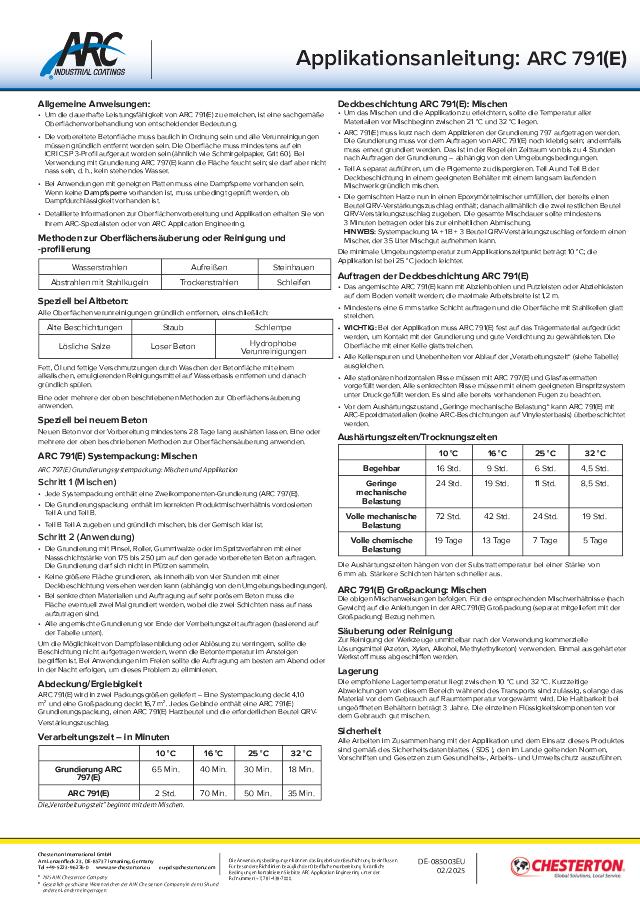 Product Datasheet: ARC 791(E) (Deutsch) Available in EMEA Only