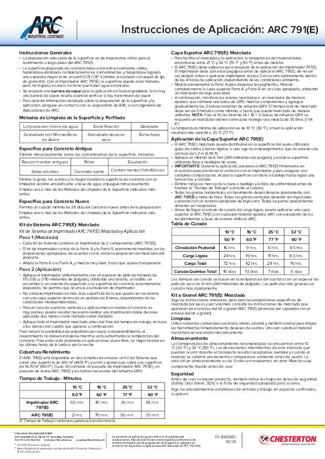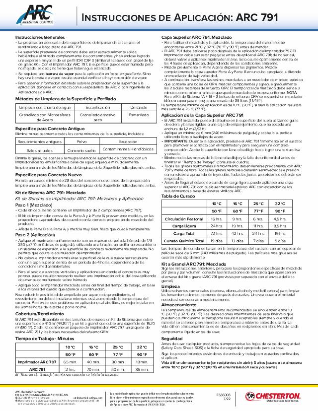 Application Instructions: ARC 791(E) (Español) Available in EMEA Only