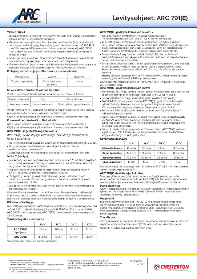 CE Declaration Of Performance: ARC 791(E) (Finnish) Available in EMEA only