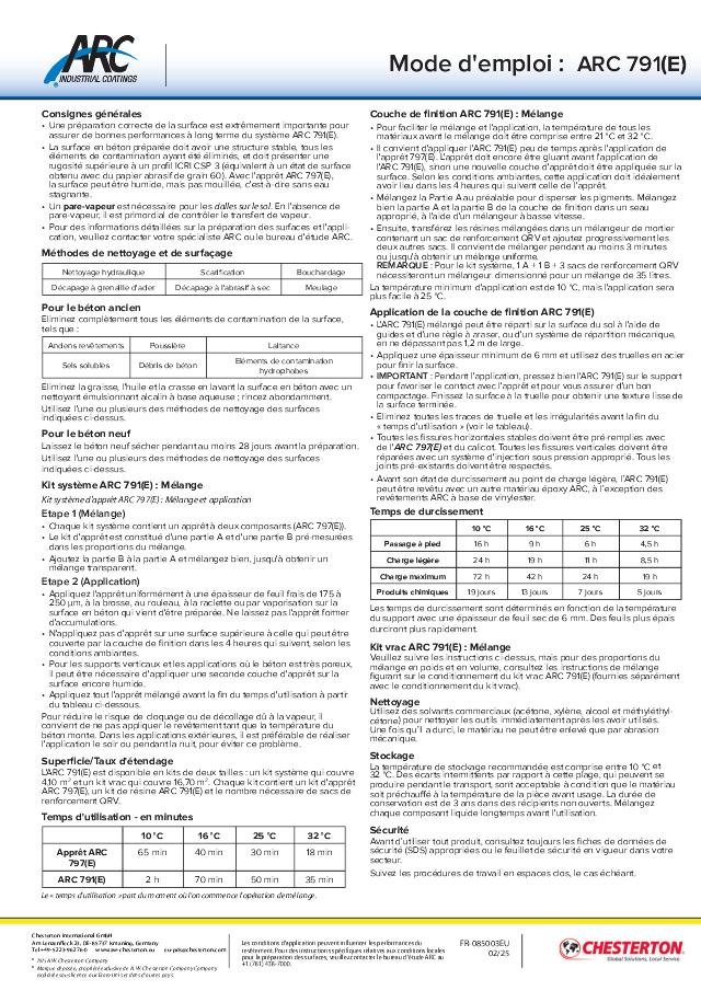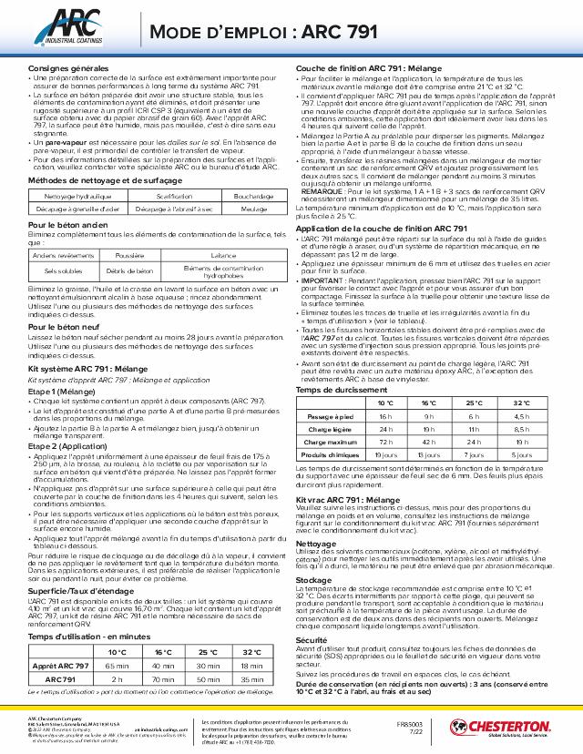 Application Instructions: ARC 791(E) (Français) Available in EMEA Only