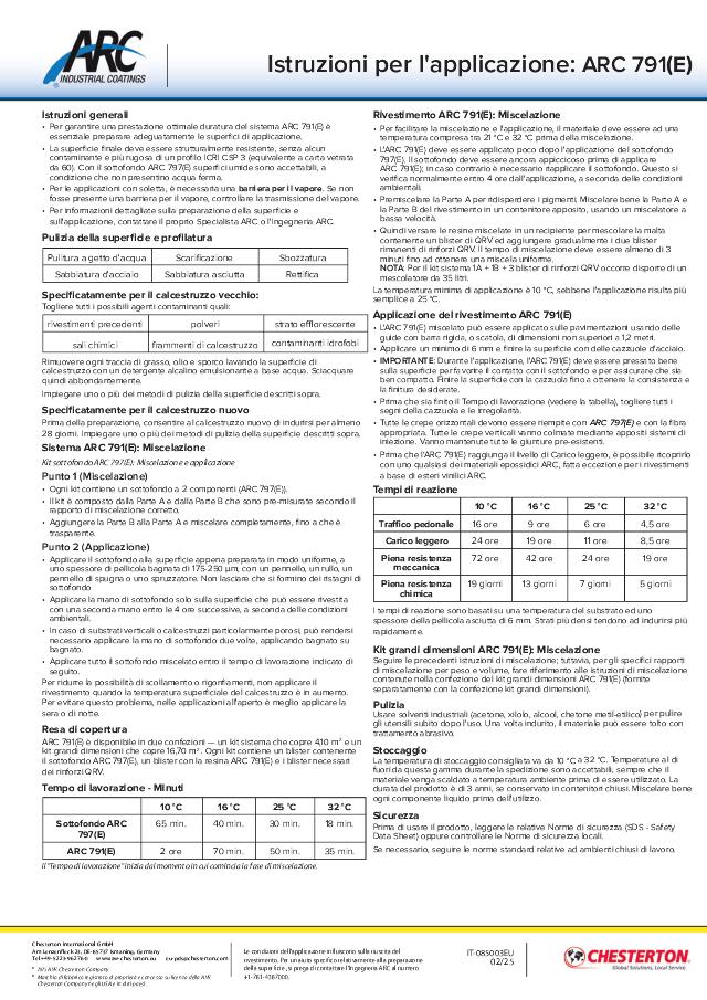 Application Instructions: ARC 791(E) (Italiano) Available in EMEA Only