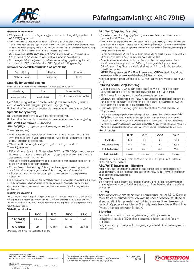 Application Instructions: ARC 791(E) (Norsk) Available in EMEA Only
