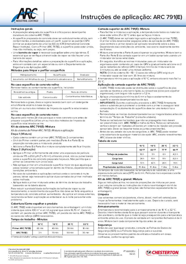 Application Instructions: ARC 791(E) (Português) Available in EMEA Only