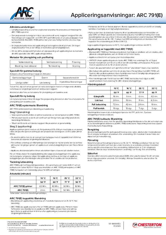 Application Instructions: ARC 791(E) (Svenska) Available in EMEA Only