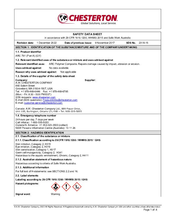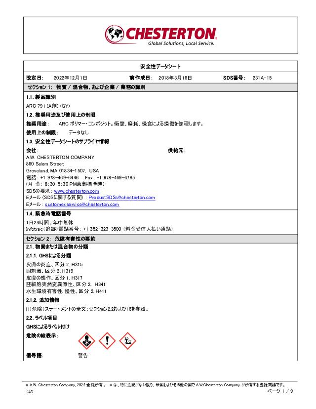 SDS (Part A) - ARC 791 (日本語 Japanese)