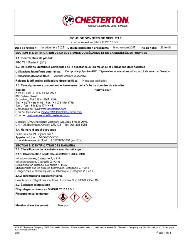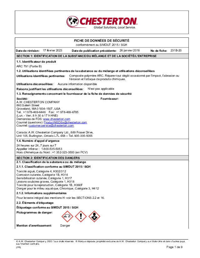 CE Declaration Of Performance: ARC 791(E) (Français) Available in EMEA only