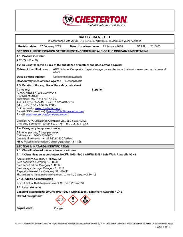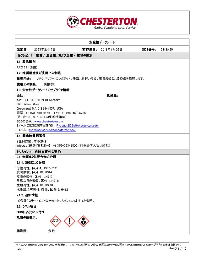 SDS (Part B) - ARC 791 (日本語 Japanese)