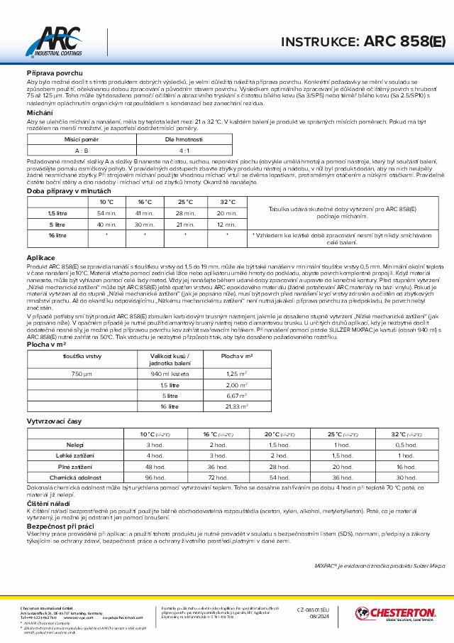 Application Instructions: ARC 858(E) - (Ceština) - Available in EMEA Only