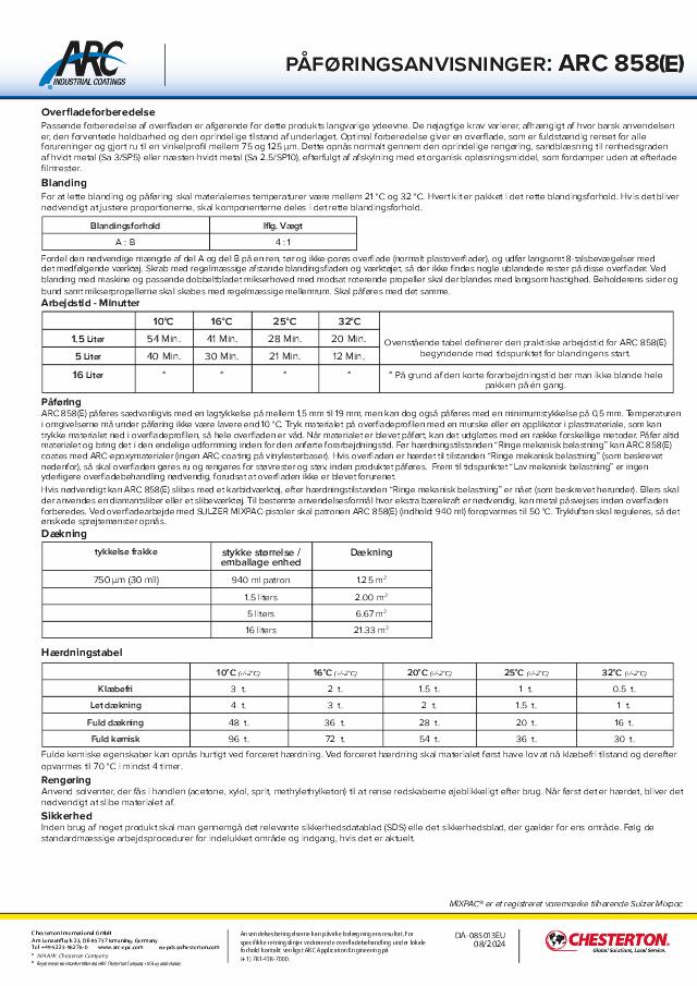 Application Instructions: ARC 858(E) - (Dansk) - Available in EMEA Only