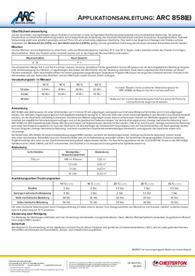 Application Instructions: ARC 858(E) - (Deutsch) - Available in EMEA Only