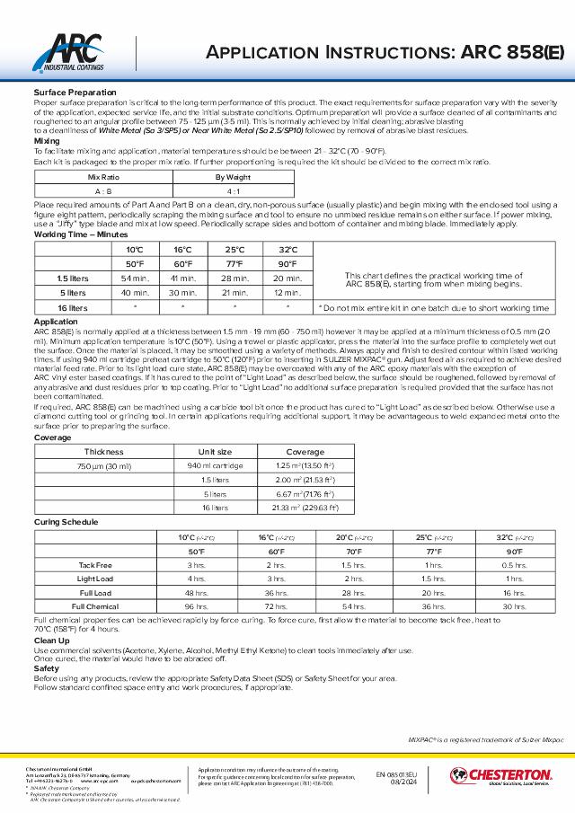Application Instructions: ARC 858(E) - (English) - Available in EMEA Only