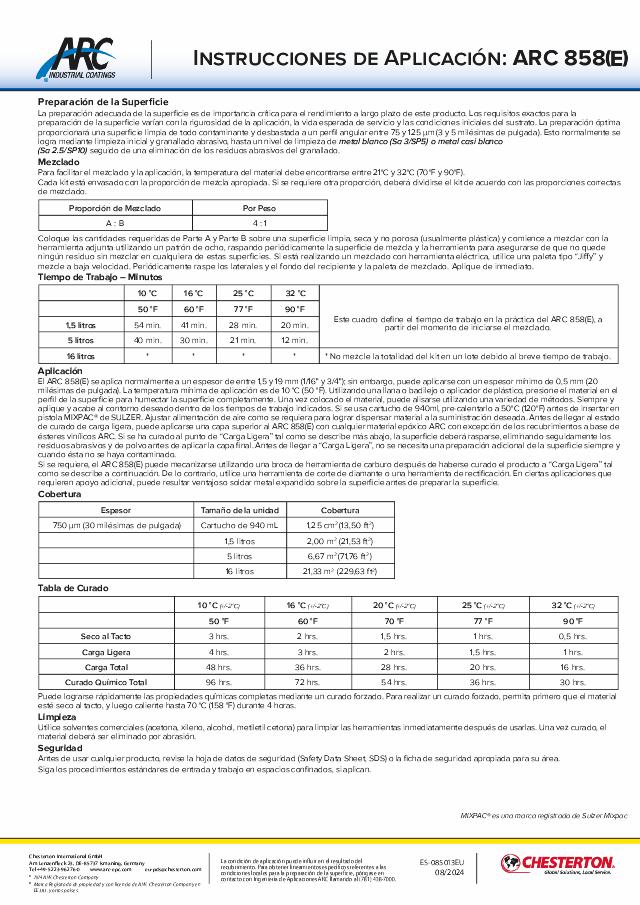 Application Instructions: ARC 858(E) - (Español) - Available in EMEA Only
