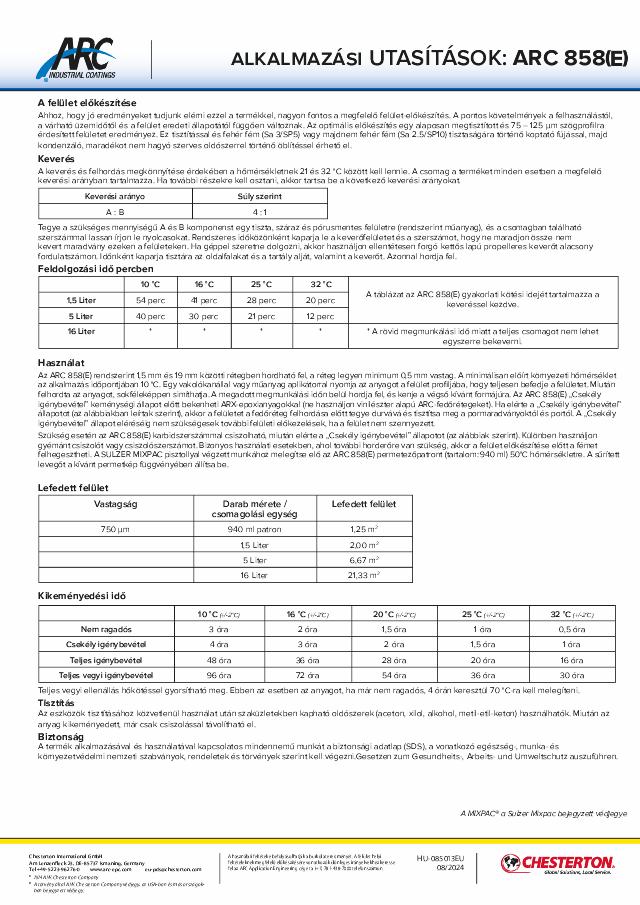 Application Instructions: ARC 858(E) - (Hungarian) - Available in EMEA Only