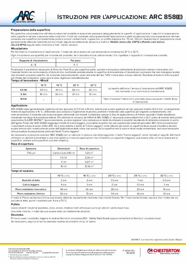 Application Instructions: ARC 858(E) - (Italiano) - Available in EMEA Only