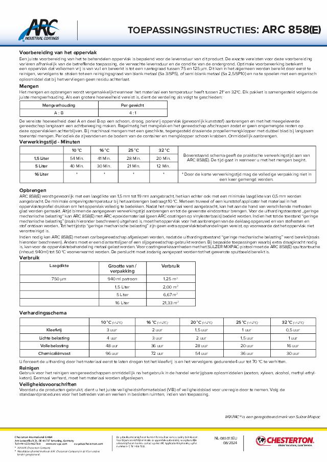 Application Instructions: ARC 858(E) - (Nederlands) - Available in EMEA Only