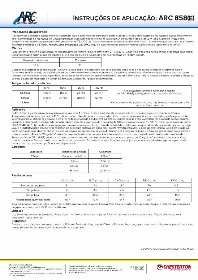 Application Instructions: ARC 858(E) - (Português) - Available in EMEA Only