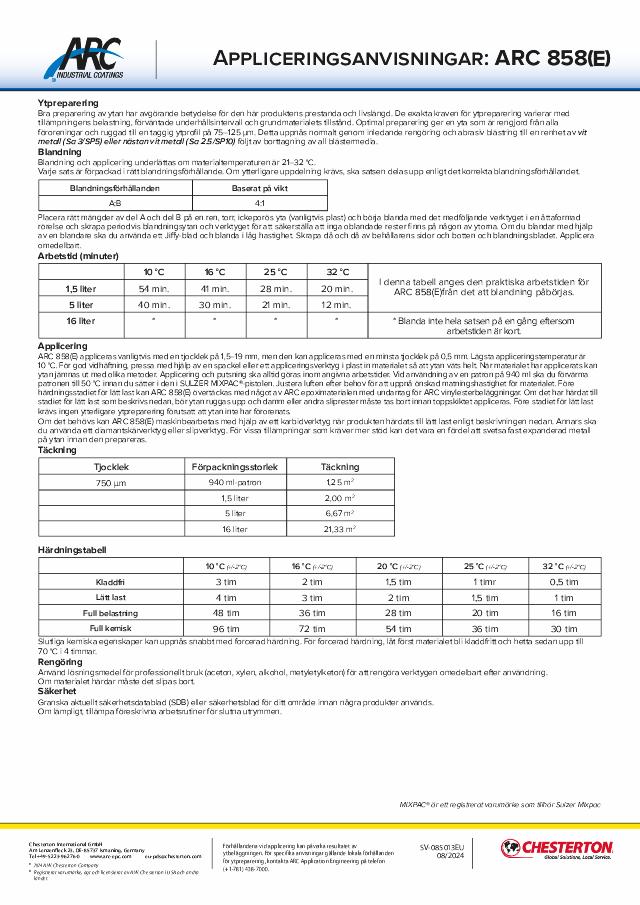 Application Instructions: ARC 858(E) - (Svenska) - Available in EMEA Only