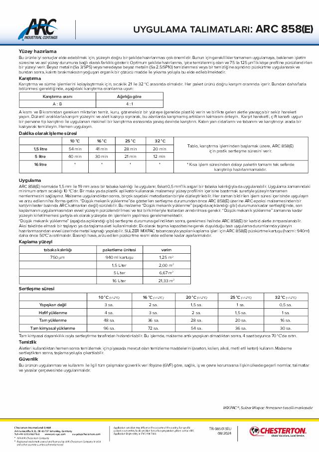 Application Instructions: ARC 858(E) - (Türkçe) - Available in EMEA Only