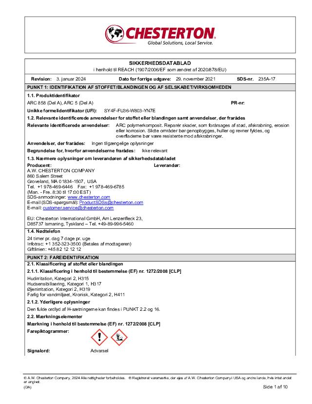 SDS (Part A) - ARC 858, ARC 5 (Dansk)
