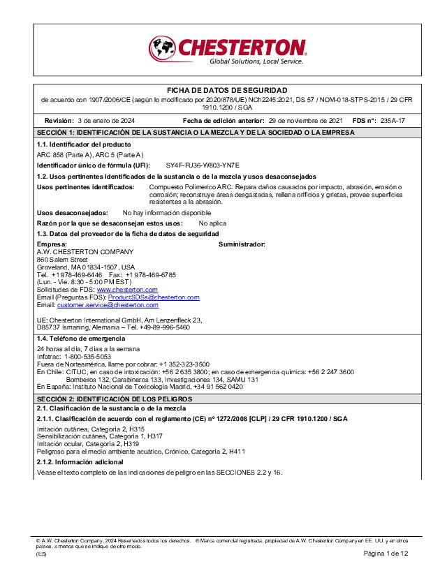 SDS (Part A) - ARC 858, ARC 5 (Español)