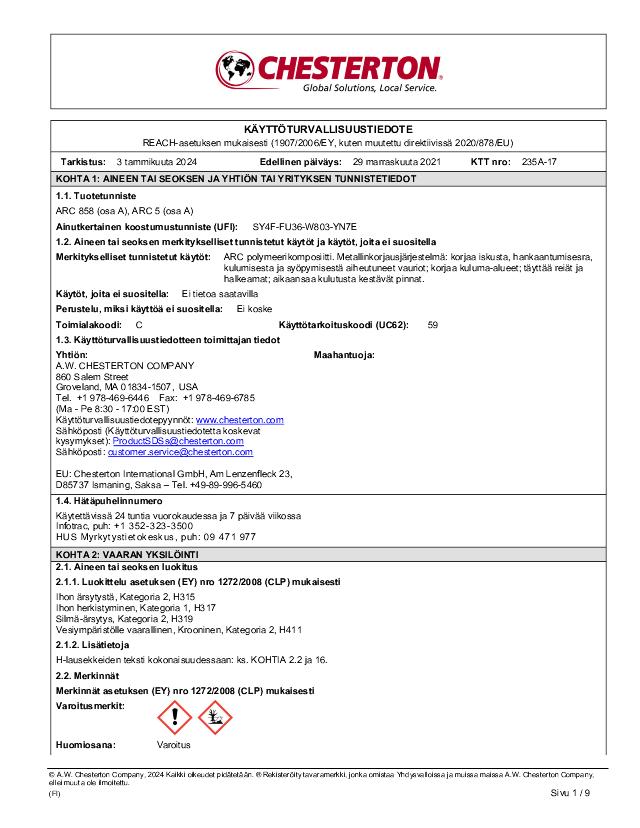 SDS (Part A) - ARC 858, ARC 5 (Finnish)