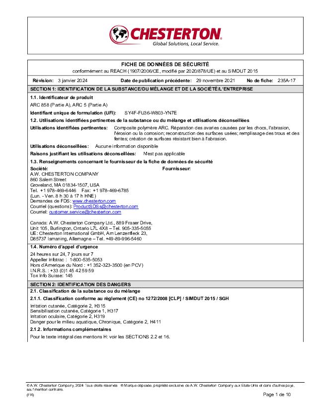 SDS (Part A) - ARC 858, ARC 5 (Français)