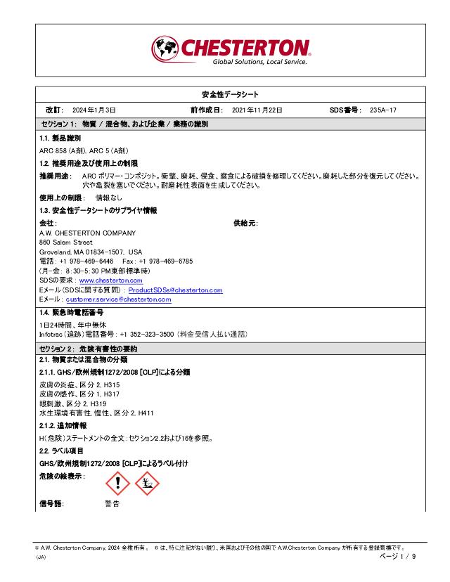 SDS (Part A) - ARC 858, ARC 5 (日本語 Japanese)