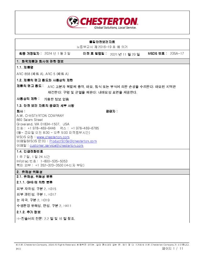 SDS (Part A) ARC 858, ARC 5 (한국어 Korean)