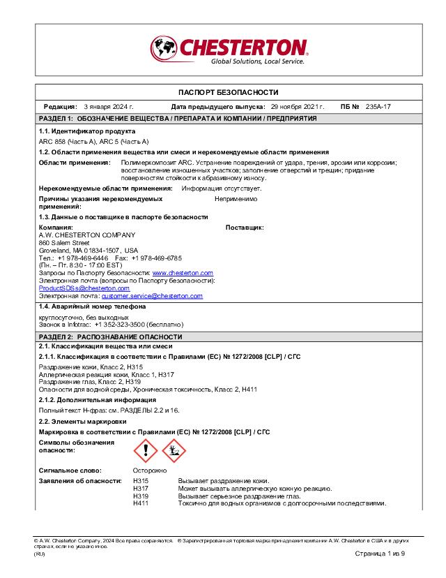 SDS (Part A) - ARC 858, ARC 5 (English)
