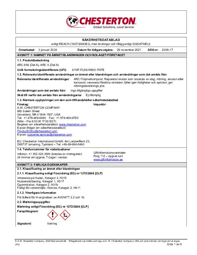 SDS (Part A) - ARC 858, ARC 5 (Svenska)