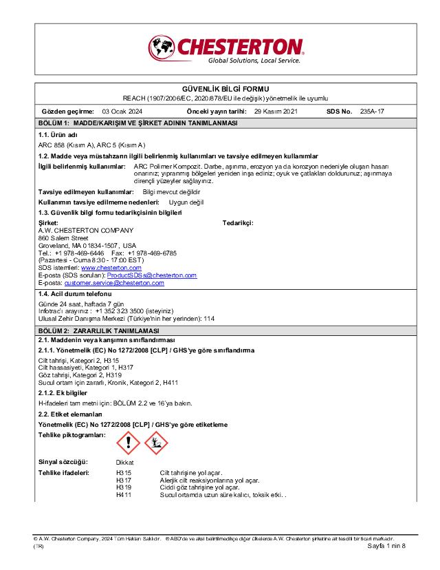 SDS (Part A) - ARC 858, ARC 5 (Türkçe)