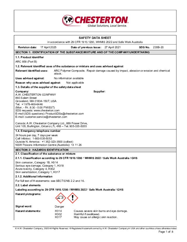 SDS (Part B) - ARC 858 (English)