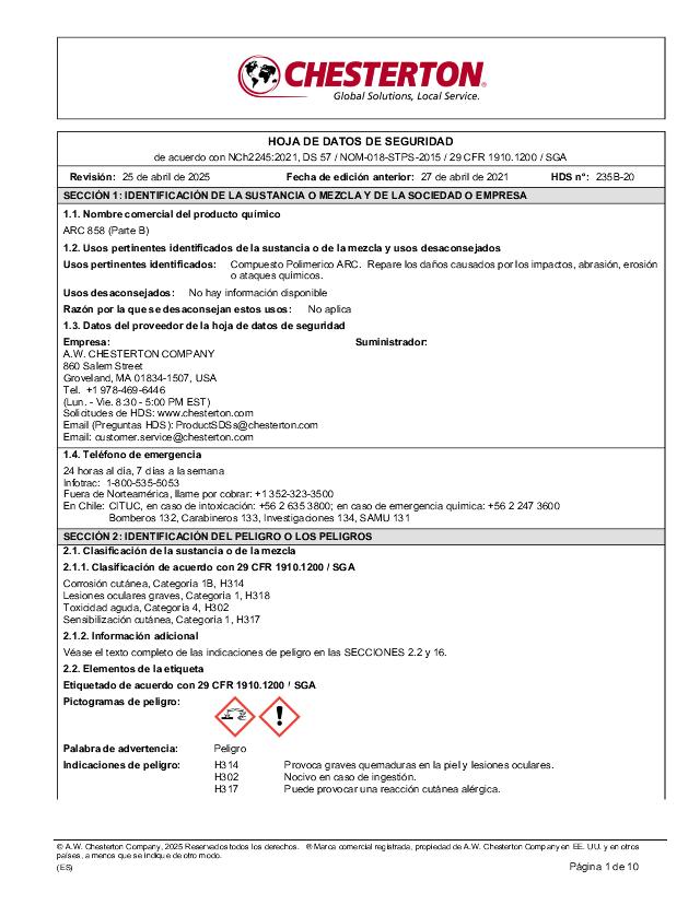 SDS (Part B) - ARC 858 (Español)