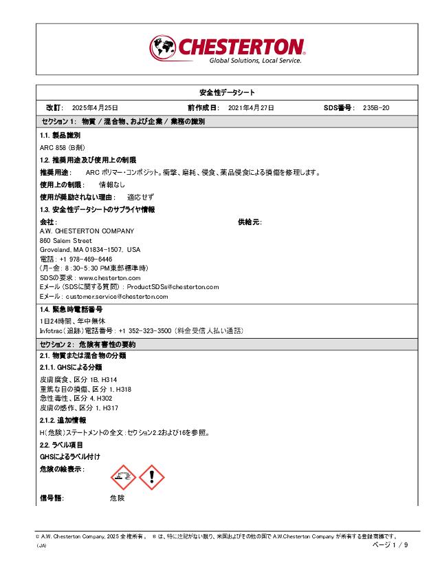 SDS (Part B) - ARC 858 (日本語 Japanese)