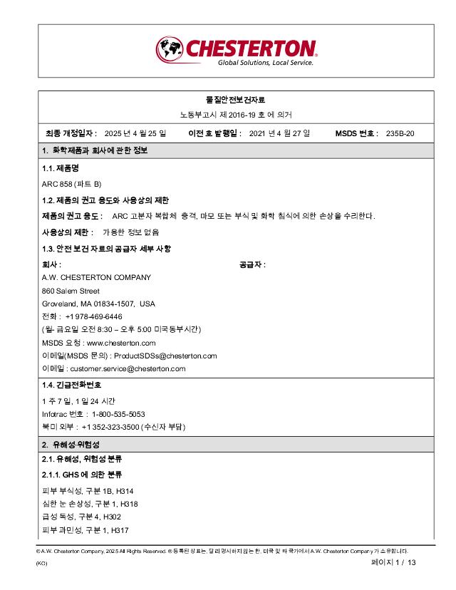 SDS (Part B) ARC 858 (한국어 Korean)