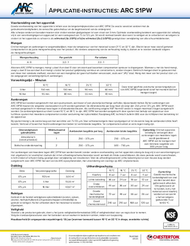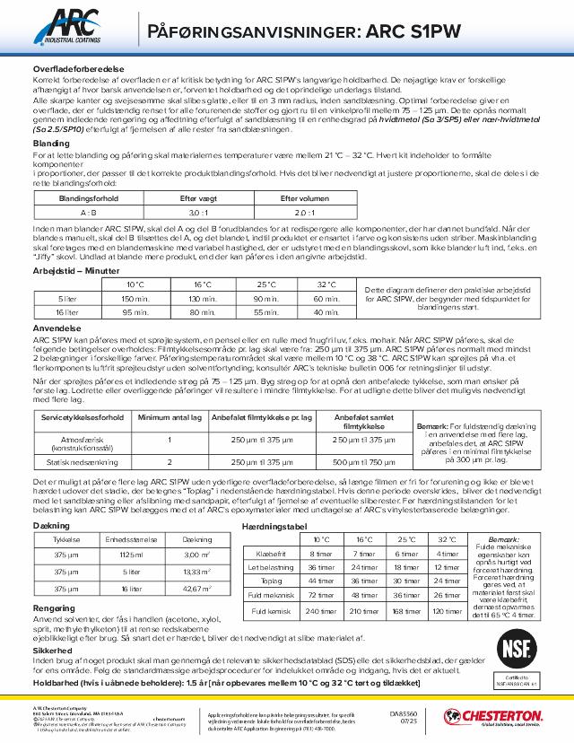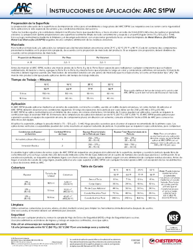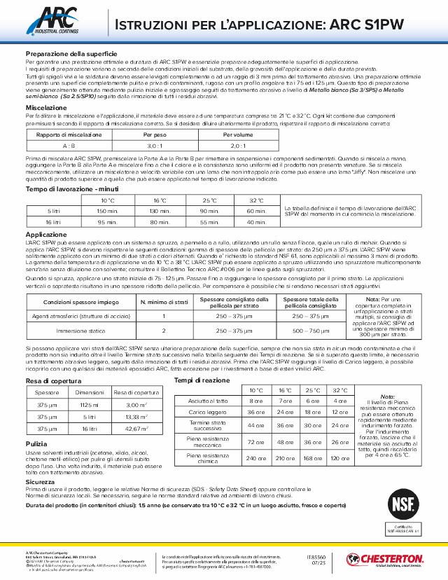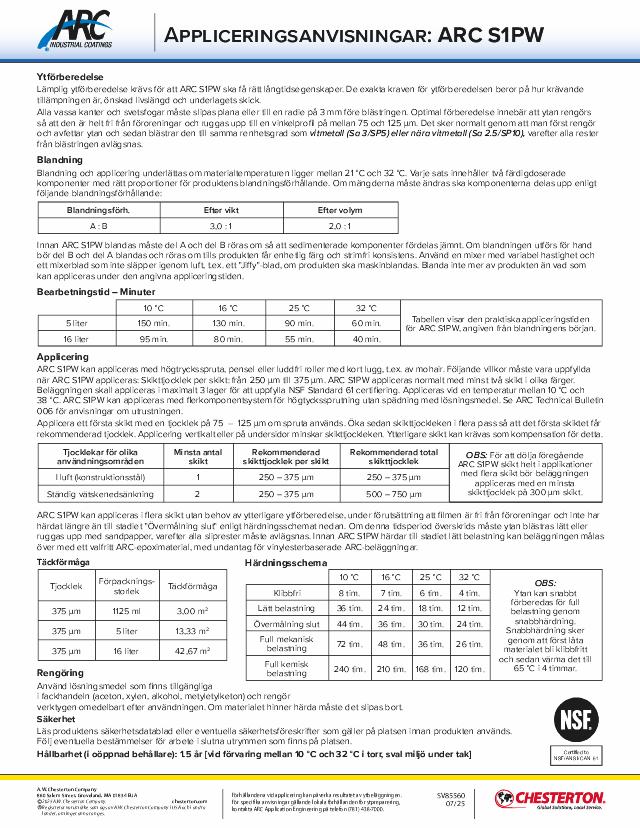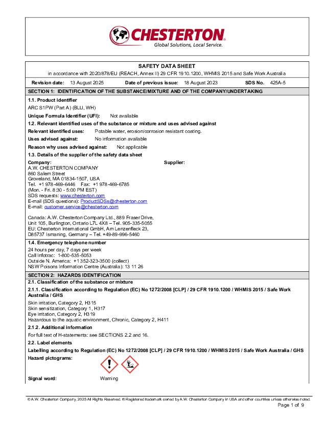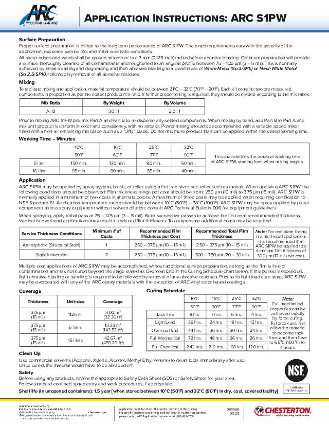 Certification: NSF 61 / Potable Water Approval - ARC S1PW