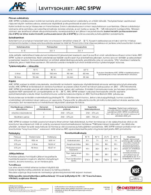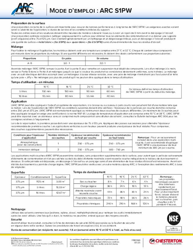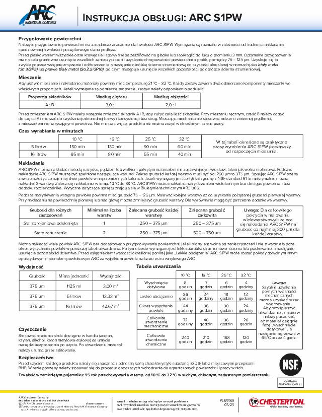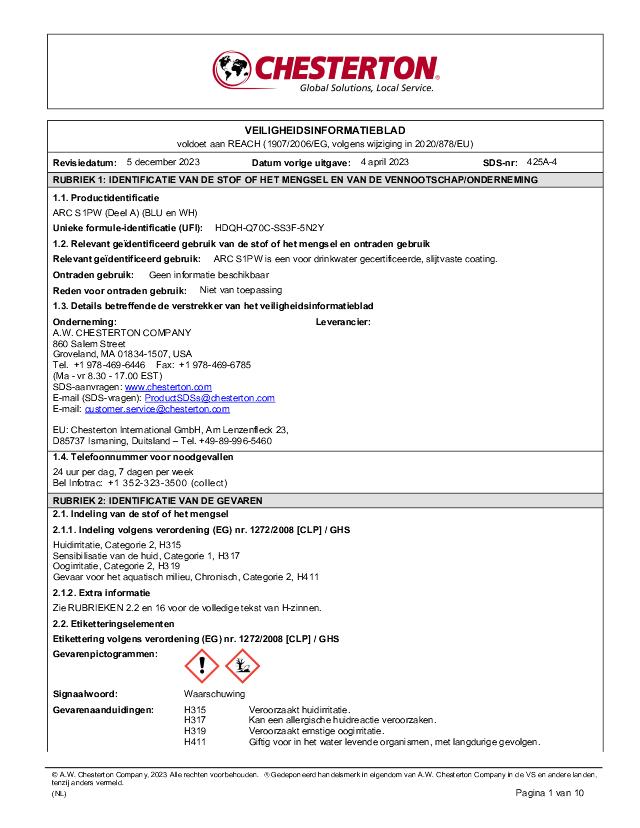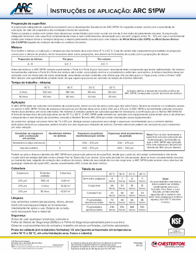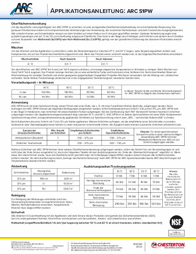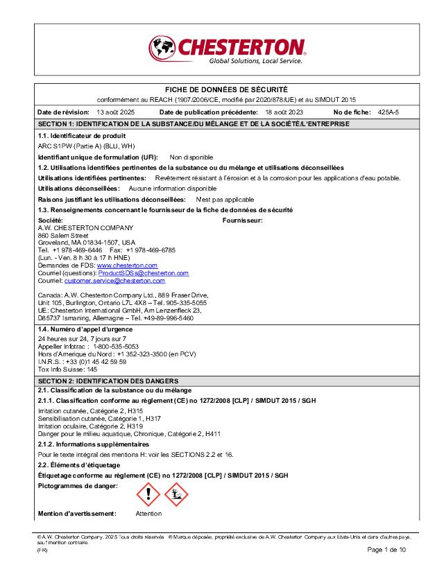 Certification: NSF 61 / Potable Water Approval - ARC S1PW