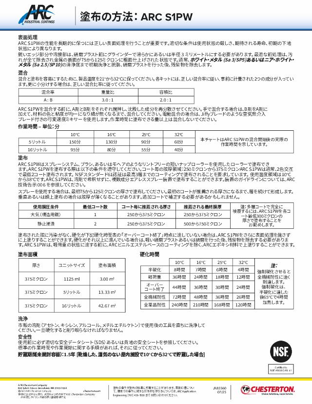 Application Instructions - ARC S1PW (日本語 Japanese)