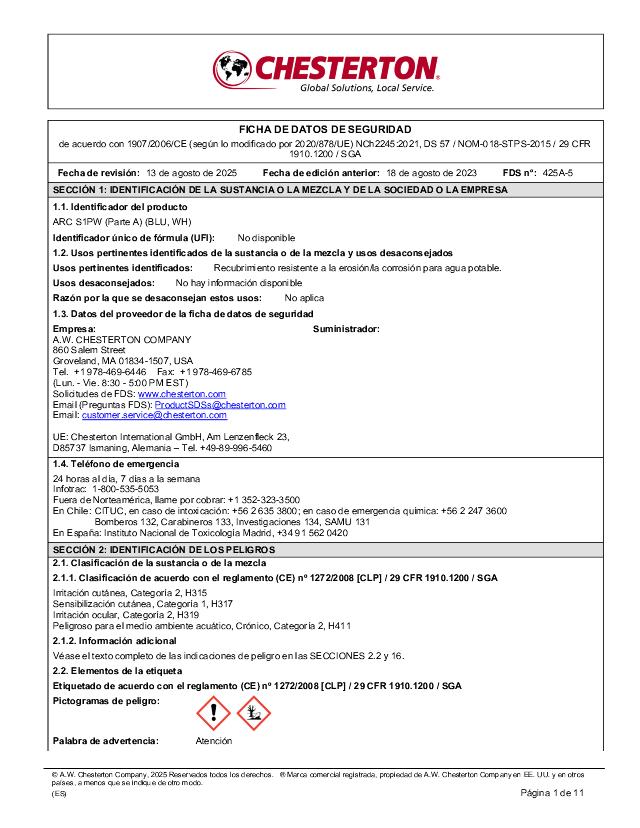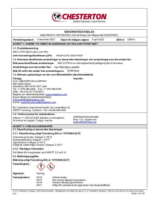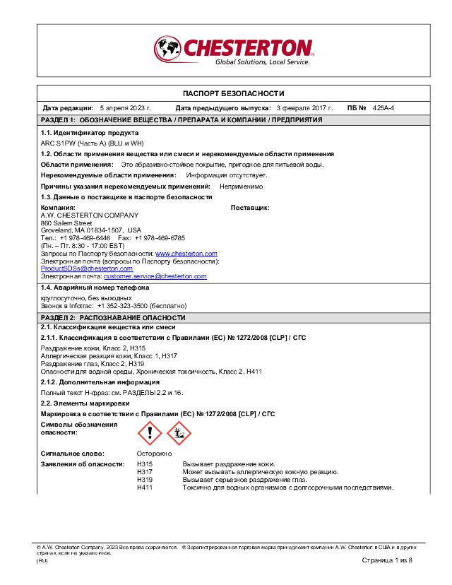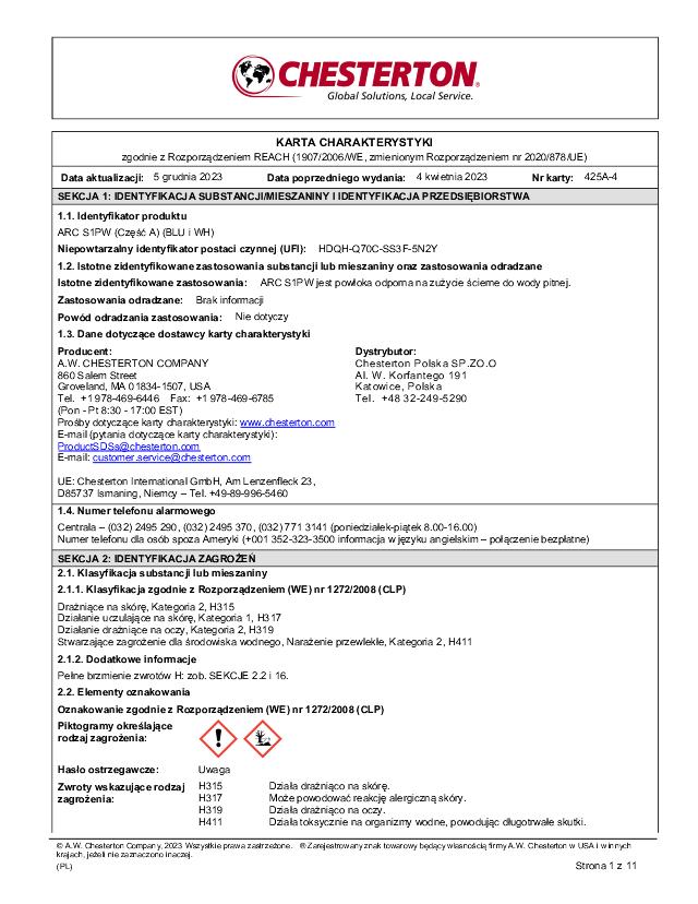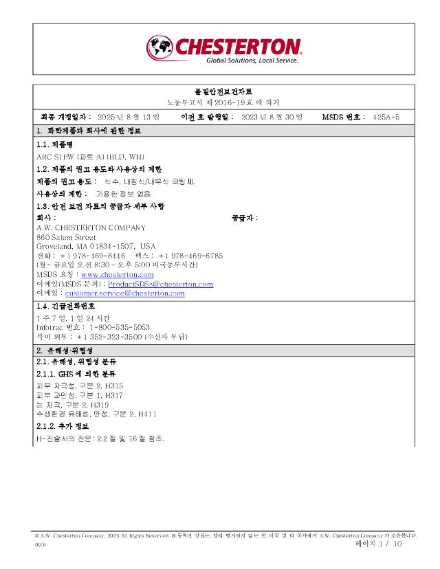 SDS (Part A) ARC S1PW (한국어 Korean)