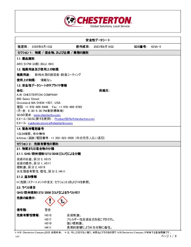 SDS (Part A) ARC S1PW (日本語 Japanese)