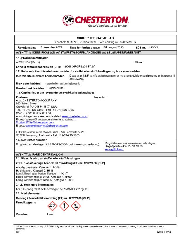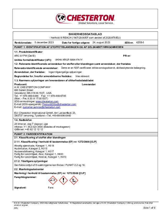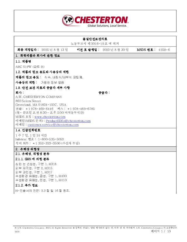 SDS (Part B) ARC S1PW (한국어 Korean)