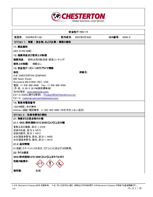 SDS (Part B) ARC S1PW (日本語 Japanese)