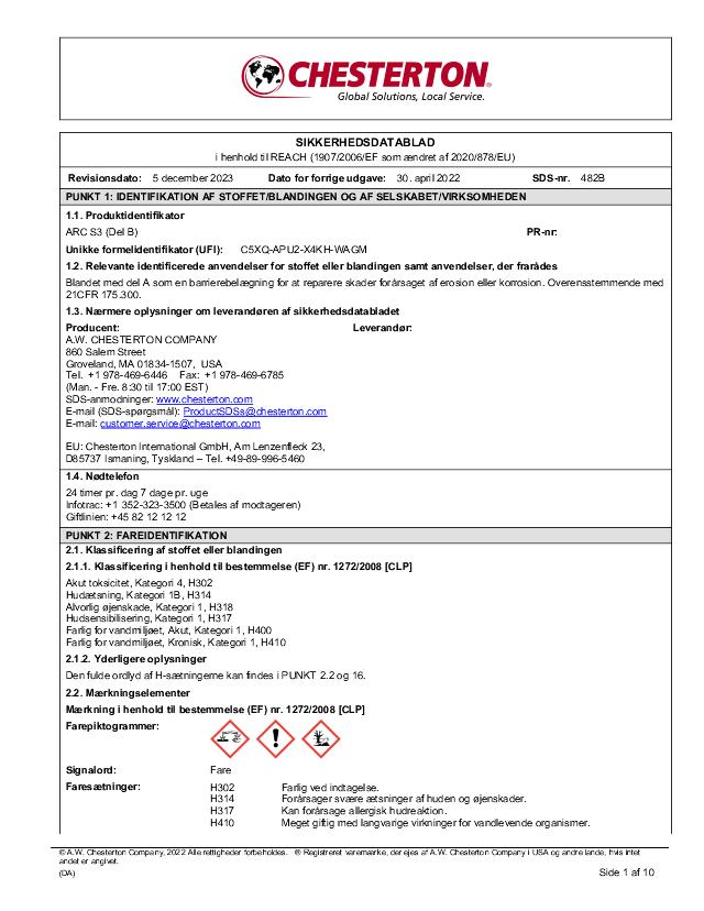 SDS (Part B) - ARC S3 (Dansk)