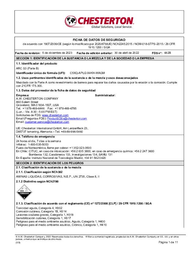 SDS (Part B) - ARC S3 (Español)