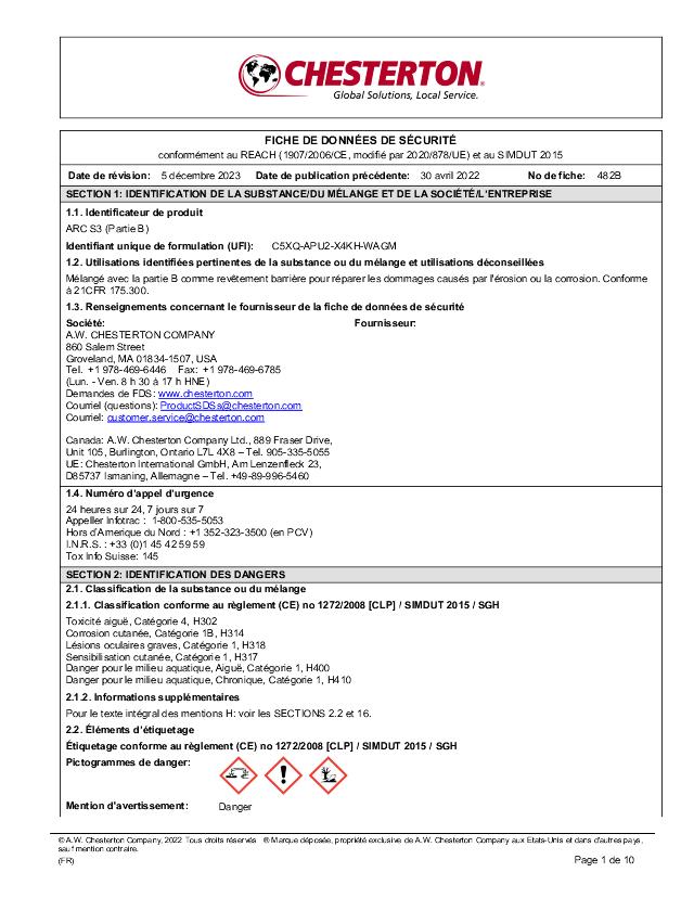 SDS (Part B) - ARC S3 (Français)