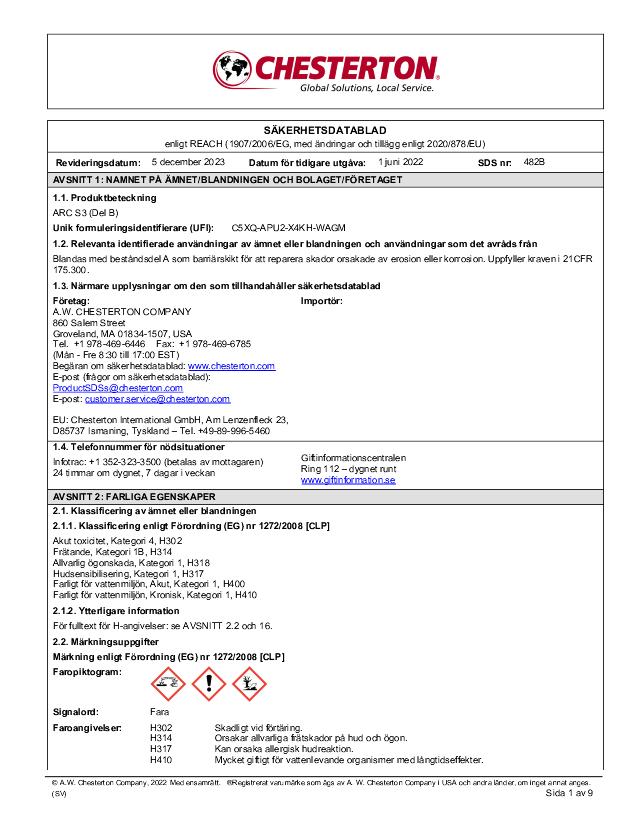 SDS (Part B) - ARC S3 (Svenska)